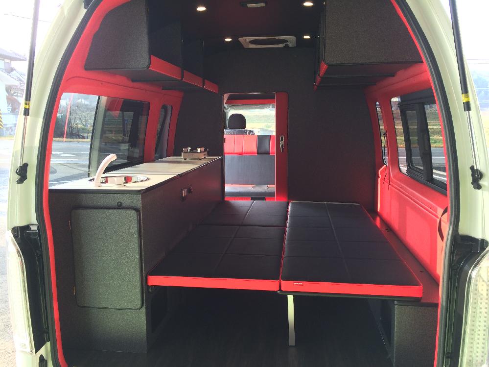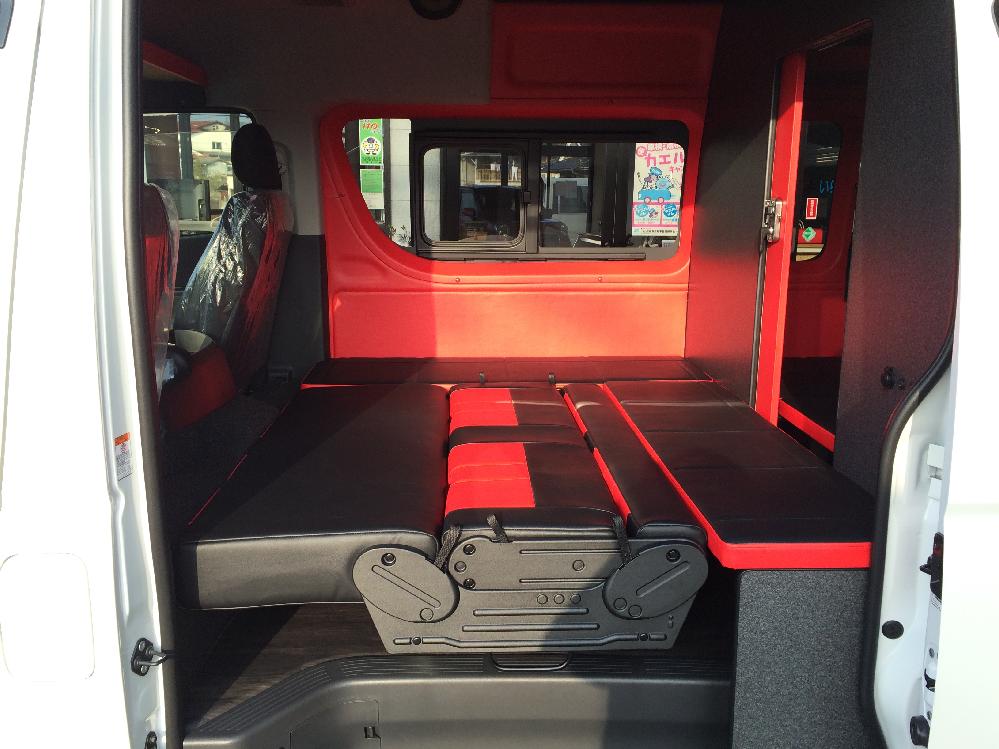 仕切り壁付基本仕様です♪ 1,200mm幅、3点式シートベルト標準装備です。 後ろ向きにもできます。ここで着替えてリアゲートから出発!なんてこともできます。 セカンドシートの部屋だけでもオプションのセカンドベッドキットを使えばベッドとして使用できます。 遊び道具を積んで出かけよう♪
